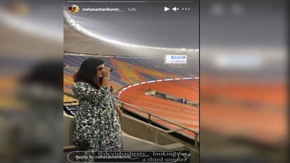 ऐसे में नताशा उन्हें ही दूरबीन से तलाशती नजर आई, कि वो थर्ड अंपायर है कौन, जिसने जमीन पर गेंद टच होने के बाद भी सूर्यकुमार यादव को आउट दे दिया था। दरअसल, 14वें ओवर में सूर्यकुमार ने सैम करन की गेंद पर स्वीप शॉट लगाया लेकिन गेंद सीधे डेविड मलान के हाथों में चली गई। मैदानी अंपायर से सॉफ्ट सिग्नल में आउट कहा था ऐसे में थर्ड अंपायर ने भी इसी फैसले को बरकरार रखा और उन्हें आउट करार दिया।