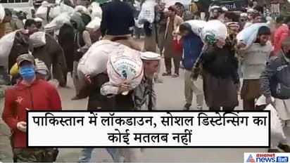 पाकिस्तान में धारा 144 लगी होने के बावजूद लोग राशन के लिए इकट्ठे हो रहे हैं। और बिना एक दूसरे से दूरी बनाए राशन की बोरियां ले जा रहे हैं।