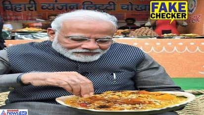 तस्वीर के साथ दावा किया जा रहा है किपीएम मोदी बिहारी बिरयानी खा रहे थे ना कि डिश लिट्टी चोखा। लोगों ने इस तस्वीर के साथ मोदी के चिकन खाने की बात कही। इसके साथ पाक पीएम इमरान खान के साथ पीएम मोदी एक तस्वीर भी शेयर की जाने लगी।