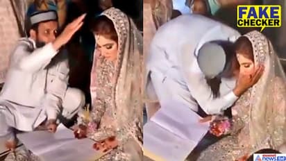 फैक्ट चेक डेस्क.   pakistani maulana kissing bride fake news: सोशल मीडिया पर एक वीडियो वायरल हो रहा है जिसमें एक शख़्स एक मुस्लिम दुल्हन के गाल पर प्यार से किस कर रहा है। इस वीडियो को सैकड़ों लोग शेयर कर रहे हैं साथ ही दावा किया जा रहा है कि निकाह होते ही मौलवी ने दुल्हन को झपट्टा मारकर चूम लिया। लोग इस वीडियो पर आपत्ति जता रहे हैं साथ ही विशेष समुदाय पर तंज करके सवाल किए जा रहे हैं। अब सवाल ये है कि ये वायरल वीडियो कहां का है, कब का है और किस करने वाला शख्स दुल्हन का कौन है?  फैक्ट चेक में हम इन सभी सवालों के जवाब बता रहे हैं-