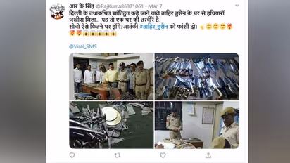 इसके बाद इन्हीं तस्वीरों को दूसरे कैप्शन के साथ शेयर किया गया। इसमें लिखा गया कि हथियारों का ये जखीरा ताहिर हुसैन के घर से बरामद किया गया था।
