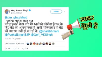 वीके सिंह ने 18 अप्रैल को ट्वीट पोस्ट किया था, लेकिन बाद में इसे हटा दिया। इसके बाद उन्होंने एक और पोस्ट किया और स्पष्ट किया कि उन्होंने गाजियाबाद डीएम का ध्यान आकर्षित करने के लिए ट्वीट किया था, ताकि जरूरतमंदों तक मदद पहुंच सके।