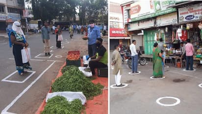 जैसे ही बुधवार को सुबह लोग दुकान पर सामान खरीदने के लिए पहुंचे तो इस दौरान दुकानदारों ने सोशल डिस्टेंसिंग के लिए एक तरीका अपनाया। उन्होंने ग्राहकों के लिए एक-एक मीटर की दूरी पर एक गोला बना दिया और उनपर नंबरिंग कर दी। जिसका जो नंबर होगा वह उस गोले पर खड़ा हो जाएगा। आगे वाला आगे गोले पर जाएगा तो पीछे वाला उसके गोले पर आज जाएगा। जिससे सामान खरीदा जाएगा और एक-दूसरे से टच भी नहीं होना पड़ेगा।
