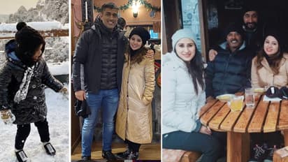 होटल के बाहर धोनी ने बेटी जीवा और पत्नी साक्षी के साथ बर्फबारी का जमकर लुत्फ उठाया।