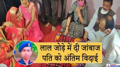 शादी का लाल जोड़ा पहनकर वीरांगना ने किया जाबांज पति को विदा, 8 महीने पहले ही हुई थी शादी