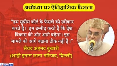 अयोध्या मसले पर सुप्रीम कोर्ट द्वारा फैसला सुनाए जाने के बाद मुस्लिम धर्म गुरुओं व नेताओं ने अपना रिएक्शन दिया है। जिसमें उन्होंने धर्म गुरुओं ने कहा कि कोर्ट ने एक विवाद को निपटारा किया है। जिससे देश अब विकास की दिशा में आगे बढ़ेगा।