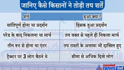 इतना ही नहीं पुलिस ने तीन रास्तों से जुलूस निकालने की अनुमति दी थी। लेकिन किसानों ने तय रूट से अलग हटकर मार्च निकाला। इस दौरान कई जगहों पर किसानों और पुलिस के बीच झड़प भी हुई। यहां तक की पांडव नगर में किसानों ने पुलिस पिकेट पर ट्रैक्टर चढ़ाने की कोशिश की। पुलिस का दावा है कि निहंगों ने पुलिसकर्मियों पर तलवार से हमला करने की कोशिश भी की।