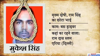 मुकेश सिंह - निर्भया से गैंगरेप का दोषी मुकेश बस क्लीनर का काम करता था। जिस रात गैंगरेप की यह घटना हुई थी उस वक्त मुकेश सिंह बस में ही सवार था। गैंगरेप के बाद मुकेश ने निर्भया और उसके दोस्त को बुरी तरह पीटा था।