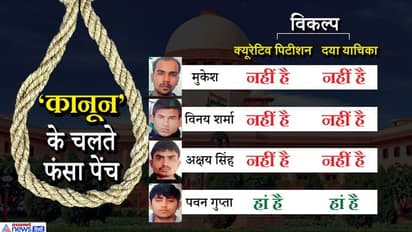 दो बार टल चुकी है फांसीः पटियाला हाउस कोर्ट चारों दोषियों के तीन बार डेथ वॉरंट जारी कर चुका है। लेकिन उनके द्वारा कानूनी विकल्प इस्तेमाल करने से दो बार फांसी टल चुकी है। जिसके बाद फांसी की तीसरी और नई तारीख 3 मार्च है, लेकिन दोषियों के वकील एपी सिंह ने दावा किया है- लिखकर रख लो इस तारीख को फांसी नहीं होगी, क्योंकि लूट का एक मामला दिल्ली हाईकोर्ट में लंबित है।