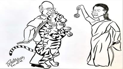 शिवसेना पर भाजपा को धोखा देने के आरोप लगने के बाद ट्विटर पर एक यूजर ने कार्टून शेयर किया, जिसमें शिवसेना के शेर के गले में रस्सी बंधी हुई है और शरद पवार उसको पकड़कर सोनिया गांधी के पास ले जा रहे हैं। सोनिया के हाथ में सत्ता है, जिसे देखकर शेर की लार टपक रही है।