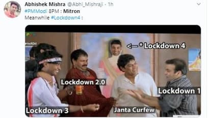 लॉकडाउन 4.0 की चर्चा ने जोर पकड़ा तो एक यूजर ने फिल्मी सीन का फनी मीम शेयर करते हुए कहा- 'लॉकडाउन पे लॉकडाउन पे लॉकडाउन मिलती जा रही है माई लॉर्ड!'