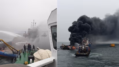 तटरक्षक जहाज जगुआर में भीषण आग,  VIDEO में देखें किस तरह जान बचानें समुद्र में कूदे क्रू-मेम्बर्स
