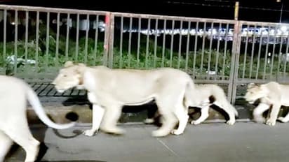 शेर वैसे तो खतरनाक होते हैं, क्योंकि वह अन्य जानवरों का शिकार करके अपनी भूख मिटाते हैं। कई बार तो वह इंसान को ही मारकर अपना भोजन तैयार करते हैं। लेकिन जिस तरह से पांच शेरों का यह झुंड राजुला-अमरेली हाइवे पर शांत होकर चल रहा था, उन्हें देखकर लग रहा है कि शेर बड़े सीधे होते हैं।