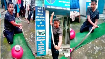 दरअसल, यह घटना मंगलवार दोपहर को स्टेट बैंक ऑफ इंडिया में हुई, जहां 7 से 8 फीट लंबा सांप घुसा था। सांप कैसे अंदर तक पहुंचा यह किसी को पता नहीं, वहीं कुछ लोगों का कहना है कि रात में घुसा होगा, लेकिन जब बैंक मैनेजर ने सीसीटीवी कैमरे देखे तो उसमें वह दिखाई नहीं दिया।