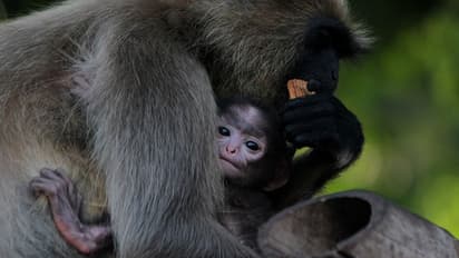 यह तस्वीर उड़ीसा के खंडगिरी केव की है। एक मादा मंकी मौसम की मार से अपने बच्चे को बचाते हुए।