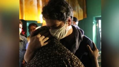 प्रियंका गांधी भावुक हो गईं और पीड़ित की मां को गले लगाया।
