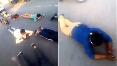 एमपी के अशोकनगर में यवकों से पुलिस कान पकड़वा कर उठक-बैठक लगवाती हुई।