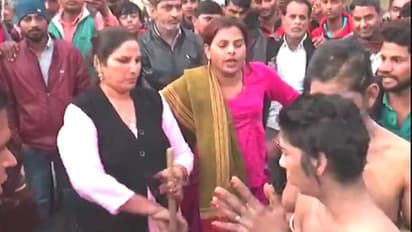 फेक किन्नरों के बाल काटती पूजा बाई। पूजा ने बताया कि ऐसे फेक युवक किन्नर समाज को बदनाम करते हैं।