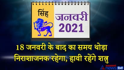 इस महीने केतु-शुक्र वृश्चिक राशि का चौथे भाव में, सूर्य-बुध धनु राशि का पांचवें भाव में, गुरु-शनि मकर राशि का छठे भाव में, मंगल मेष राशि का नौवें भाव में, राहु वृषभ राशि का दसवें भाव में, चंद्रमा कर्क राशि का बारहवें भाव में रहेगा। महीने के आरंभ में अप्रिय समाचार सुनने को मिल सकता है। प्रेम प्रसंगों के मामले उजागर हो सकते हैं। कोई गुप्त बात सबके सामने आ सकती है। 4 जनवरी के बाद किसी खास व्यक्ति से मुलाकात होगी। बिजनेस में कोई नया अनुबंध हो सकता है। 8 जनवरी के बाद रुका हुआ पैसा मिल सकता है। संपत्ति को लेकर विवाद हो सकता है। कोई खास व्यक्ति ही आपके विरुद्ध षड़यंत्र रच सकता है। महीने के मध्य में आप किसी की मदद करेंगे। 18 जनवरी के बाद समय थोड़ा निराशाजनक रहेगा। हेल्थ खराब हो सकती है। पुरानी मेहनत पर पानी फिर सकता है। शत्रु हावी होने का प्रयास करेंगे। 22 जनवरी के बाद समय पक्ष का बनेगा। सरकारी कामों में सफलता मिलेगी। महीने का अंतिम सप्ताह थोड़ा भागदौड़ वाला रहेगा। स्वयं के लिए भी समय नहीं निकाल पाएंगे। इस समय फिजूलखर्च पर नियंत्रण रखना जरूरी है।