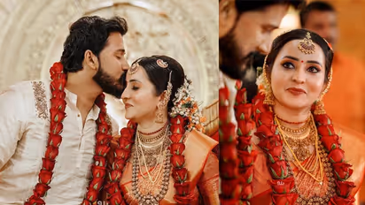 मुंबई/ हैदराबाद. साउथ फिल्म इंडस्ट्री की जानीमानी एक्ट्रेस भामा यानी रीथिका राजेंद्र कुरूप गुरुवार को शादी के बंधन में बंध गई हैं। उन्होंने दुबई बेस्ड बिजनेसमैन अरुण संग सात फेरे लिए। भामा की शादी की कुछ फोटोज सामने आई हैं। हैवी गोल्ड नेकलेस, मांग टीका, लाल रंग की बनारसी साड़ी और हाथों में भरी-भरी चूड़ियां पहन भामा शादी में बेहद खूबसूरत नजर आ रही थी। शादी के तुरंत बाद दूल्हे ने अपनी नई नवेली दुल्हन के माथे को चूम लिया। बता दें कि एक्ट्रेस की शादी कोट्टयम स्थित कन्वेंशन सेंटर में हुई।