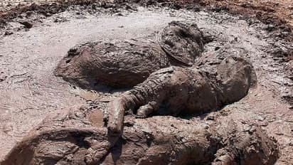 मां के साथ उनके दो छोटे बच्चे कीचड़ में फंसे थे। बाहर निकालने के बाद बच्चे तो दस मिनट में खड़े होने लगे, लेकिन मां 20 से 25 मिनट बाद खड़ी हुई। खड़े होने के बाद दोनों छोटे बच्चे जाने लगे और करीब 15 मिनट बाद मां ने उनका पीछा किया।