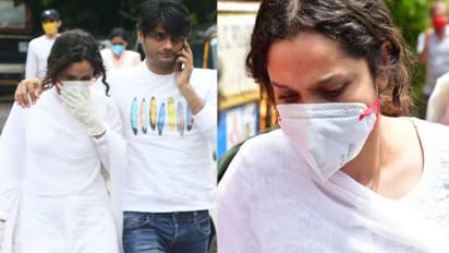 अंकिता काफी दुखी और मायूस नजर आ रही हैं। वे मास्क और ग्लव्स पहने हुए हैं। उनके साथ मौजूद दोस्त संदीप सिंह उन्हें सहारा दे रहे हैं।