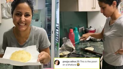 इसके साथ एक ने हिना खान से सवाल करते हुए लिखा, 'ये पूड़ी है या फिर भटूरा, लेकिन क्वारनटीन में समय बिताने का अच्छा तरीका है।'