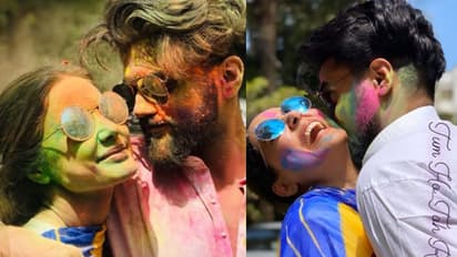 ब्वॉयफ्रेंड रॉकी जायसवाल के साथ होली खेलते हुए रोमांटिक हुई हिना खान।