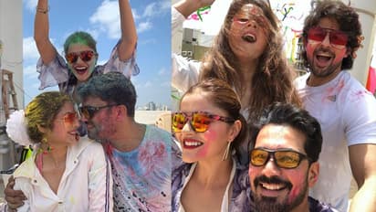 अंकिता लोखंडे ने ब्वॉयफ्रेंड विक्की जैन के साथ होली खेली।