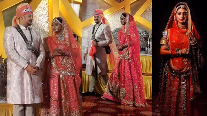 मुंबई. 'ये रिश्ता क्या कहलाता है' की एक्ट्रेस मोहिना कुमार 14 अक्टूबर को शादी के बंधन में बंधी थी। शादी के 28 दिन बाद मोहिना का वेडिंग रिसेप्शन मायके यानी रीवा में आयोजित किया गया। रिसेप्शन से जुड़ी कुछ फोटोज सामने आईं हैं। फोटो में मोहिना मांग में सिंदूर, हैवी नेकलेस, डार्क पिंक कलर का लहंगा, चूड़ा पहने बेहद खूबसूरत नजर आ रही हैं। आपको बता दें कि मोहिना, रीवा के राजघराने से ताल्लुक रखती हैं। मोहिना उत्तराखंड के कैबिनेट मंत्री और आध्यात्मिक गुरु सतपाल महाराज की बहू बनीं हैं। उन्होंने सतपाल महाराज के छोटे बेटे सुयश रावत संग सात फेरे लिए। शादी की सभी रस्में उत्तराखंड के हरिद्वार में हुईं।
