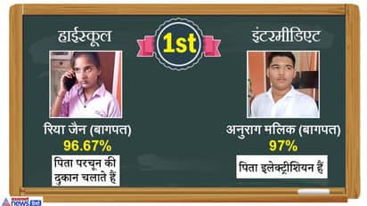 1st Rank - हाईस्कूल में बागपत की रिया वर्मा व इंटरमीडिएट में भी बागपत के ही अनुराग मालिक टॉपर रहे।