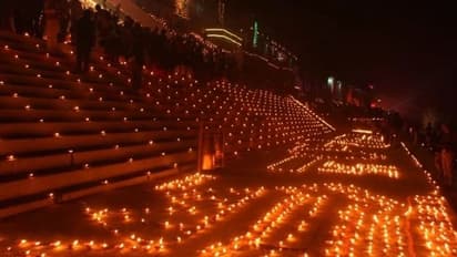 वाराणसी में देव दीपावली के अवसर पर जलाए गए दीये।