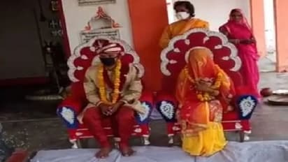 दूल्हे ने मास्क लगाकर तो वहीं घूंघट में दुल्हन ने शादी की। इस शादी में फेरे कराने वाले पंडित जी ने भी मास्क लगाकर रस्में संपन्न कराईं।