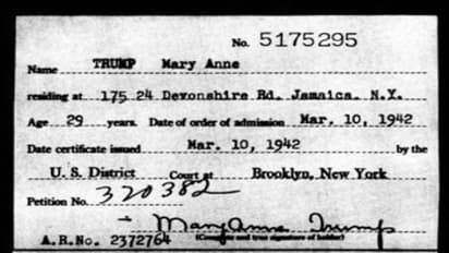 डोनाल्ड ट्रंप की मां मैरी ऐने ट्रंप का जन्म 10 मई 1912 में हुआ था। उनके पिता मछुआरा थे। बाद में मैरी ने होनी जिंदगी अमेरिका में बिताने की सोची और स्कॉटलैंड से अमेरिका आ गई।