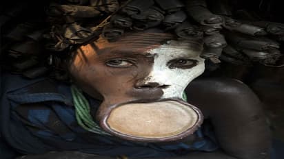 इसमें एक सूरी महिला को एक बड़ी मिट्टी की प्लेट के साथ चित्रित किया गया है जिसे इथियोपिया में उसके निचले होंठ में कटौती के बीच डाला गया है। प्लेटें, जो 16 इंच से बड़ी हो सकती हैं। इन प्लेट्स को तब पहली बार बच्चों के होंठ में फिट की जाती है जब वे सिर्फ 12 साल की होती हैं।