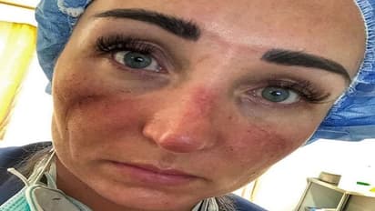 यह चेकोस्लोवाकिया की नर्स है। लगातार मास्क पहने रहने से पूरा चेहरा खराब हो गया है।