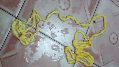 फ्लोर पर फेंकने के बाद उसने देखा कि वो 17 फीट का एक टेपवॉर्म था। पीले रंग का ये कीड़ा उसके पेट में रह रहा था और उसकी बॉडी को खा कर बड़ा हो रहा था।