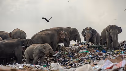 श्रीलंका के ओलुविल में जंगली हाथियों को उनके निवास स्थान पर अतिक्रमण करने वाले डंप में कचरा खाते देखा गया। हाथी इन कचरों में प्लास्टिक खाते नजर आए।