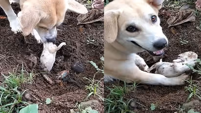 मां ने अपने बच्चे को कब्र खोदकर बाहर निकाला। उसने अपने पंजे से मिटटी हटाई और तब तक ऐसा करते रही, जब तक वो पपी को बाहर नहीं निकाल पाई।
