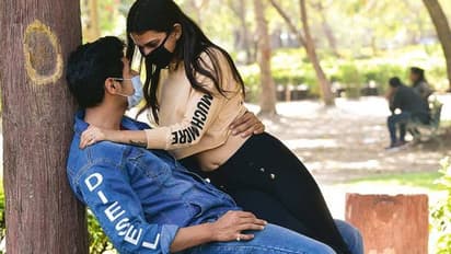 कोरोना की शुरुआत में लोग घर से बाहर निकल रहे थे। सभी नॉर्मल लाइफ जी रहे थे। एक कपल पार्क में मास्क लगाकर रोमांस करता हुआ।