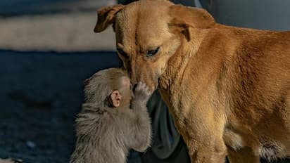हिमाचल प्रदेश के सोलन के एक इलाके में लोगों ने जहर देकर कुछ बंदरों को मार डाला। वे उनकी हरकतों से परेशान हो थे। इसमें एक 10 दिन के बंदर के बच्चे के मां-बाप की जान भी चली गई। छोटा-सा बंदर का बच्चा अनाथ हो गया। वह इधर-उधर परेशानहाल घूम रहा था। उसे देख कर एक प्रेग्नेंट डॉग की ममता उमड़ आई। उसने बंदर के उस छोटे बच्चे को अपना लिया। वह हर समय उसकी देख-रेख करने लगी और उसका ध्यान रखने लगी। बंदर का बच्चा भी उसे अपनी मां की तरह मानने लगा। इन दोनों की कुछ तस्वीरें फोटोग्राफर प्रकाश बादल ने ली हैं, जिनमें इन जानवरों का आपसी प्यार दिखाई पड़ता है। 48 वर्षीय फोटोग्राफर प्रकाश बादल सोलन के चक्की मोर में पक्षियों की तस्वीरें लेने गए थे। तभी उन्हें ये दृश्य दिखाई पड़े। इन तस्वीरों को देख कर किसी का दिल भर आएगा।
