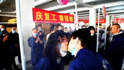 चीन में जब लॉकडाउन में ढील दी गई तो यंग कपल घरों से बाहर निकल पड़े। वुहान के एक एकांत स्थान पर मास्क लगाए एक-दूसरे को किस कर रहा एक यंग कपल।