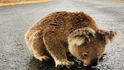 ऑस्ट्रेलिया: जंगलों में लगी आग ने सबकुछ तबाह कर दिया है। अरबों जानवर मारे गए। उनके आशियाने छीन गए। जिन जानवरों को बचा लिया गया, उनके लिए अब भूख-प्यास बड़ी समस्या बनकर सामने आई है। पूरी दुनिया ऑस्ट्रेलिया के लिए प्रार्थना कर रही है। इस आपदा की कई मार्मिक तस्वीरें सामने आई हैं। इस बीच सोशल मीडिया पर एक कोआला की तस्वीर वायरल हो रही है। आग से बचने के बाद अब इन जानवरों के सामने खाने-पीने की समस्या खड़ी हो चुकी है। वायरल हुई एक तस्वीर में कोआला रास्ते में जमा पानी चाटता नजर आ रहा है। कुछ दिनों से ऑस्ट्रेलिया में बारिश हो रही है। इस बारिश से थोड़ी राहत मिली है।