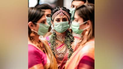 हटके डेस्क: दुनिया में कोरोना का कहर देखने को मिल रहा है। भारत में भी कोरोना ने पैर पसार दिए हैं। 220 मार्च तक भारत में वायरस से मरने वाले लोगों की संख्या 5 हो गई है। साथ ही कई लोग इससे संक्रमित हैं। इस बीच लोगों को आपस में इक्कठा होने से मना किया गया है। चूंकि भारत में शादी का सीजन भी चल रहा है, इस बीच सोशल मीडिया पर शादी की एक ऐसी फोटोज वायरल हो रही है, जिसमें कपल मास्क पहने नजर आ रहे हैं। मास्क पहन शादी की ये तस्वीरें तेजी से वायरल हो रही है। आप भी देखें कैसे निभाई जा रही हैं शादी की रस्में...