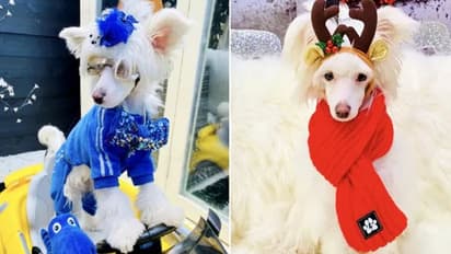 आंखों में चश्मा लगाए और नीले कलर के महंगे कपड़े पहना ये चाइनीस क्रेस्टेड ब्रीड डॉग अपनी लाइफ राजाओं की तरह जीता है।