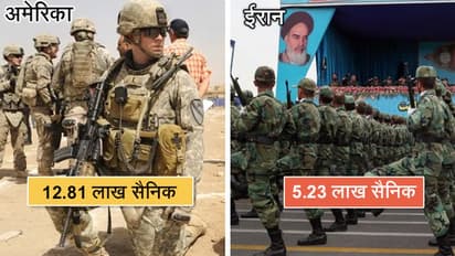 सैन्य क्षमता : ब्रिटेन के थिंक टैंक इंटरनेशनल इंस्टिट्यूट फॉर स्ट्रैटिजिक स्टडीज के मुताबिक ईरान में लगभग 5 लाख 23 हजार सक्रिय सैनिक हैं। इसमें से 3.5 लाख ईरान की सेना में वहीं, इस्लामिक रिवॉल्युशनरी गार्ड्स में 1.5 लाख सैनिक हैं। उधर, अमेरिका की बात करें तो इस मामले में अमेरिका के पास दोगुने से ज्यादा यानी 12.81 लाख सैनिक हैं।