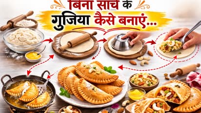 Gujiya Without Mould: होली का त्योहार बस कुछ ही दिनों में आने वाला है और होली से पहले घरों में ढेर सारे मिष्ठान और पकवान बनाए जाते है। जिसमें गुजिया सबसे इंपॉर्टेंट है। होली के दिन गुजिया का भोग जरूर लगाया जाता है और घर वालों या मेहमानों को इसे खिलाया जाता है। लेकिन कई बार होता है कि हमारे पास गुजिया बनाने का सांचा नहीं होता है और इतना समय भी नहीं बचा होता कि मार्केट जाकर गुजिया का सांचा खरीद कर ला सकें। तो घर में पड़ी छोटी सी कटोरी और एक चम्मच की मदद से आप गुजिया की स्टफिंग करके इसे परफेक्ट शेप दे सकते हैं और 15 मिनट में आधा किलो से ज्यादा गुजिया बनाकर तैयार कर सकते हैं। आइए आपको बताते हैं कि कटोरी चम्मच की मदद से कैसे परफेक्ट शेप वाली गुजिया बनाई जा सकती है...