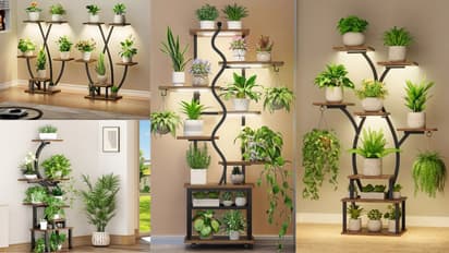 घर में धूप आने का संसाधन नहीं है तो ग्रो लाइट वाला स्टैड चुनना ज्यादा सस्टेनबल विकल्प है। तस्वीर में मेटर फ्रेम के साथ इनबिल्ट LED स्ट्रिप्स लाइट लगी है। इन्हें मेटल फ्रेम पर बनाया गया है जो बहुत क्यूट और लग्जरी फील देते हैं। आप इसे हाल के अलावा बेडरूम, ऑफिस कैबिन में रख सकते हैं। ऑनलाइन-ऑफलाइन 5000-9000रु तक इनकी ढेरों वैरायटी मिल जाएंगी।