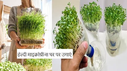 सबसे पहले खाली 1L प्लास्टिक बोतल लें। उसे बीच से काट लें (गमले की तरह)। नीचे छोटे-छोटे छेद कर दें ताकि पानी जमा न हो। अब आप हल्की गार्डन मिट्टी भर सकती हैं या टिश्यू पेपर बिछाकर भी माइक्रोग्रीन्स उगा सकती हैं। अब बीजों को ऊपर समान रूप से छिड़क दें। हल्का पानी स्प्रे करें। इसपर रोज हल्का पानी स्प्रे करें। इसे सीधी तेज धूप में नहीं, हल्की रोशनी में रखें। बस अब 6–8 दिन में छोटे हरे पत्ते निकल आएंगे।