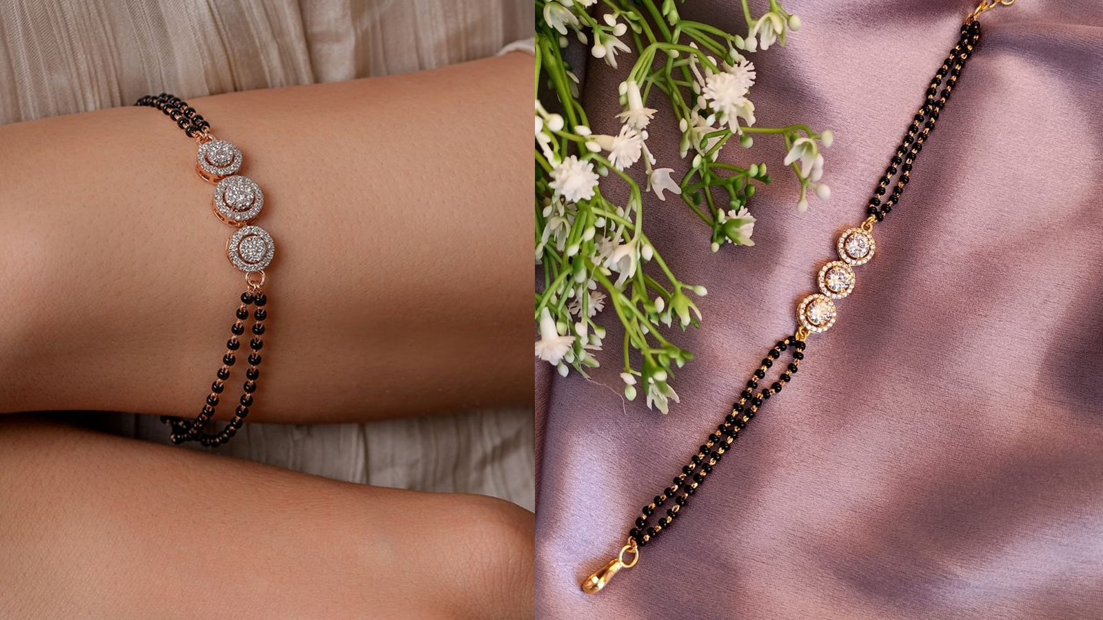 क्लासी फॉरएवर डिजाइन के लिए आप इस तरीके का बीच में रूबी स्टोन लगा हुआ छोटे डायमंड से डिटेलिंग किया हुआ मंगलसूत्र ब्रेसलेट भी चुन सकती हैं। वर्किंग वुमेन के हाथों में इस तरीके के ब्रेसलेट बहुत खूबसूरत लगेंगे।